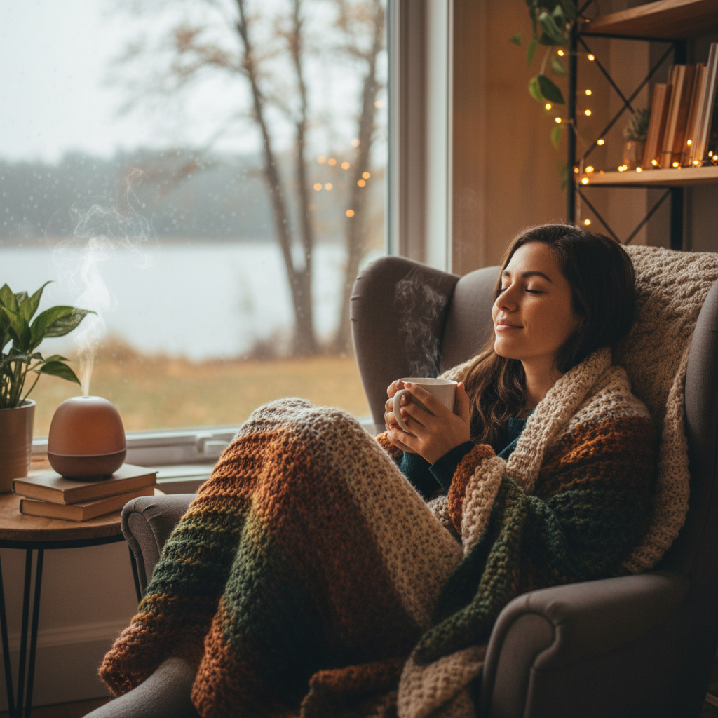 Nie musisz od razu zmieniać wystroju na hygge (choć jeśli chcesz – śmiało). Wystarczy kilka świec, koc, może miękki sweter, który wygląda jakby Cię przytulał na stałe. Stwórz sobie własny klimacik – taki, do którego chcesz wracać po całym dniu.