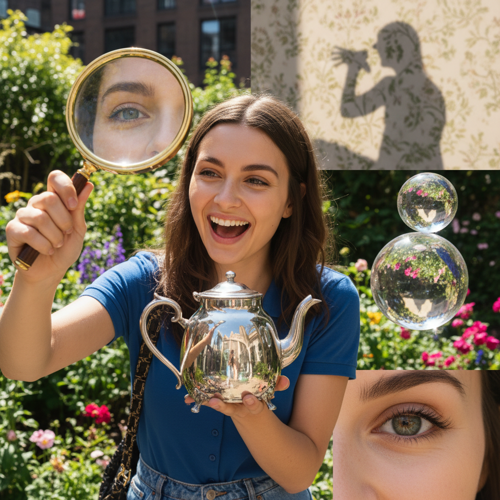 Kałuża po deszczu? Odbicie w szybie autobusu? Idealne! Selfie nie musi być oczywiste. Spróbuj uchwycić swoje odbicie w miejscach, które normalnie byś pominęła. Mi zdarzyło się zrobić zdjęcie w… czajniku. Tak, błyszczał jak lustro i efekt był genialny. Tylko trzeba uważać, żeby przypadkiem nie uchwycić bałaganu w tle (true story).