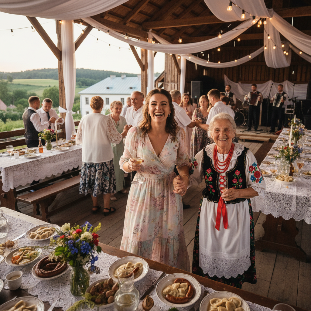Warto dodać, że tradycja hucznych wesel w Polsce sięga jeszcze czasów przedwojennych, kiedy ślub był jednym z niewielu momentów naprawdę wielkiego świętowania w życiu wsi i małych społeczności. Wesele trwało kilka dni, goście przychodzili z darami, a jedzenie i muzyka były wspólnym wysiłkiem całej wsi. Dzisiejsze przyjęcia to więc dalekie echo tej wspólnotowej celebracji — choć dziś częściej płacimy za catering niż lepimy pierogi z sąsiadkami.