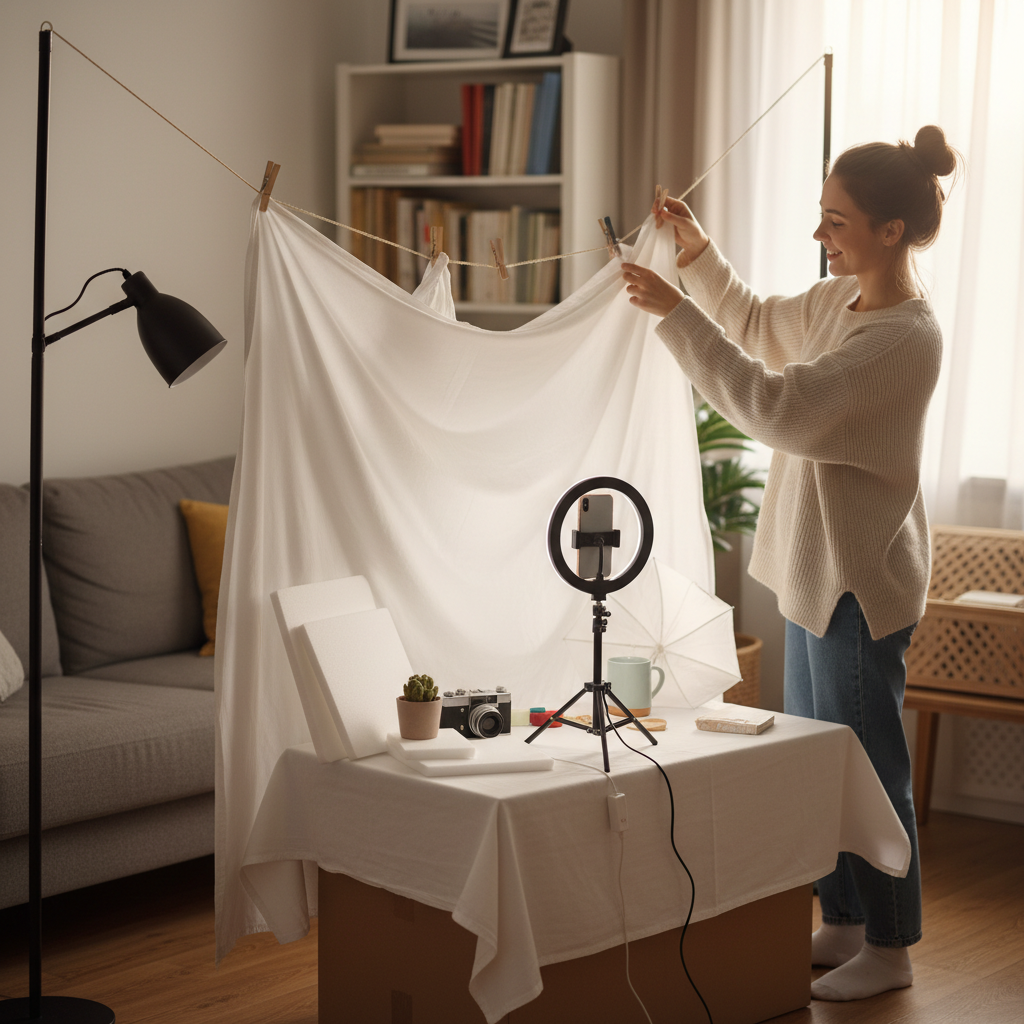 Tak! Wystarczy smartfon, trochę światła i pomysłowe ustawienie. Wiele elementów możesz zastąpić domowymi rozwiązaniami – np. tło z zasłony, statyw z książek.
