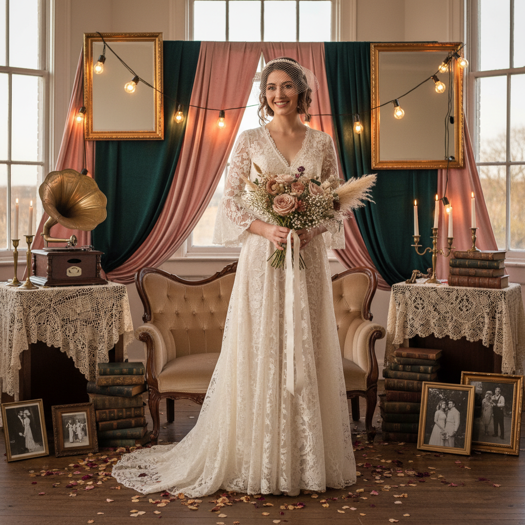 Kiedy planuję stylizację retro (choćby na imprezę, niekoniecznie ślub), zawsze zaczynam od jednego pytania: „Z których lat czerpię?” Bo lata 20. to zupełnie inna historia niż 60. czy 80. A weźmy lata 70. – kwiatowe wzory, kapelusze z ogromnym rondem i rozkloszowane rękawy. Jeśli dorzucisz do tego gramofon i kilka starych płyt na stoliku, masz klimat gotowy.
